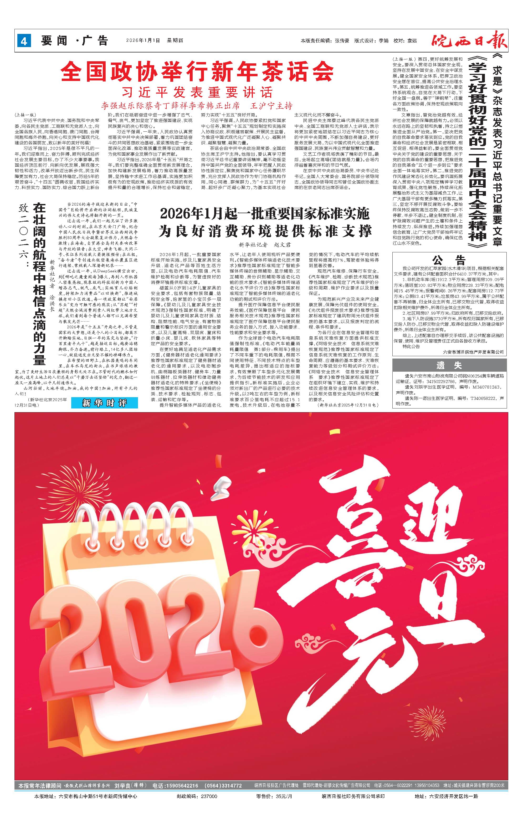 2026年1月起,一批重要国家标准开始实施,涉及儿童家具安全升级、适老化产品等百姓生活方面,以及电动汽车电耗限值、汽车维护检测和诊断等,为营造良好的消费环境提供标准支撑。
