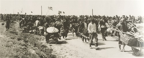 在当时人民公社化特定时期,土地可以统一规划,群众搬迁可以统筹安排,人力、物力可以统一调遣,一切为国家的建设服务。以公社为单位按团、营、连的编制,分别由同级的领导干部担任负责人。自带工棚材料、工具等分赴各施工渠道,参加挖渠开河工程。每天上工人数20万人左右,多则40余万人,最高达67.83万人。