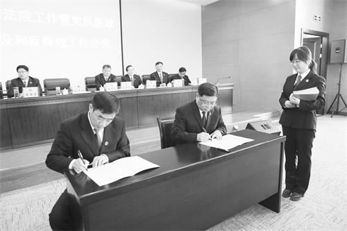 今年3月,六安市中院院长胡志刚与各县区法院院长、市法院其他领导班子成员签订了2017年度党风廉政建设责任书。各班子成员、各分管领导与分管部门第一负责人层层签订了党风廉政建设责任书,压实“一岗双责”。基层法院也层层落实廉政责任,并将履责情况列入年终考核。同时开展廉政谈话,院长与基层法院院长谈,纪检组长与中层干部、初任法官、新录公务员谈;不断筑牢思想防线,确保法院政治生态清明。