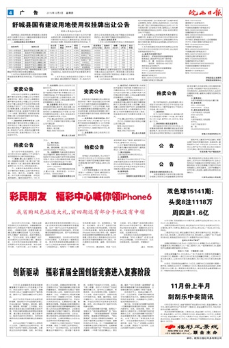 受六安市裕安区人民法院委托,我公司定于2015年12月22日下午15时在六安市招投标中心二楼开标室对以下标的公开拍卖,现公告如下: