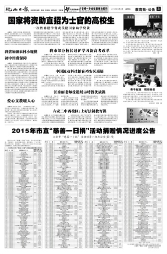 国家将资助直招为士官的高校生 一次性补偿学费或代偿国家助学贷款⊙我省加强农村小规模 初中经费保障⊙爱心支教暖人心⊙我市部分校长赴沪学习新高考改革⊙中国流动科技馆在裕安区巡展⊙汪秀丽老师受邀展示特教优质课⊙六安二中西校区:上好法制教育课⊙短消息⊙2015年市直“慈善一日捐”活动捐赠情况进度公告⊙⊙⊙⊙⊙⊙⊙⊙⊙⊙⊙⊙⊙⊙⊙⊙⊙⊙⊙⊙⊙⊙⊙⊙⊙⊙⊙⊙⊙⊙⊙⊙⊙⊙⊙⊙⊙⊙⊙⊙⊙⊙⊙⊙⊙⊙⊙⊙⊙⊙⊙⊙⊙⊙⊙⊙⊙⊙⊙⊙⊙⊙⊙⊙⊙⊙⊙⊙⊙⊙⊙⊙⊙⊙⊙⊙⊙⊙⊙⊙⊙⊙⊙⊙⊙⊙⊙⊙⊙⊙⊙⊙