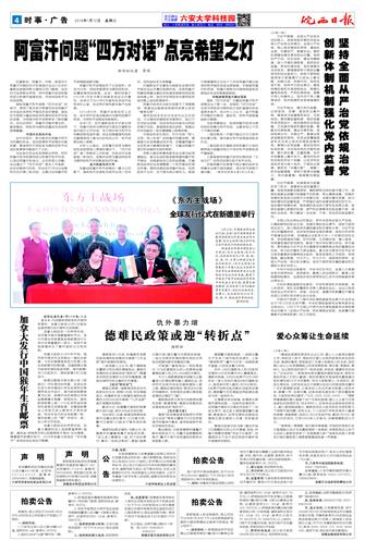中共六安市委宣传部主办 承办:皖西日报社