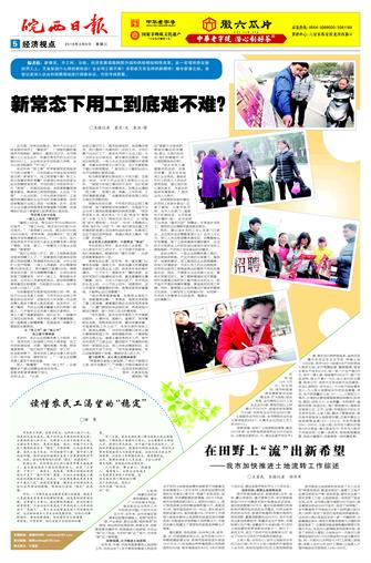 土地流转事关农村改革发展稳定,事关广大农民根本利益,是当前农业与农村工作中的热点问题。六安作为农业大市,近年来,全市在稳定家庭承包经营的基础上,按照“政府引导、产业带动、群众自愿、规范有序”的原则,突出抓好政策扶持、培育主体、创新服务等关键环节,积极推进土地流转,为农业“转”出了效益、为农村“转”出了活力、为农民“转”出了新希望。