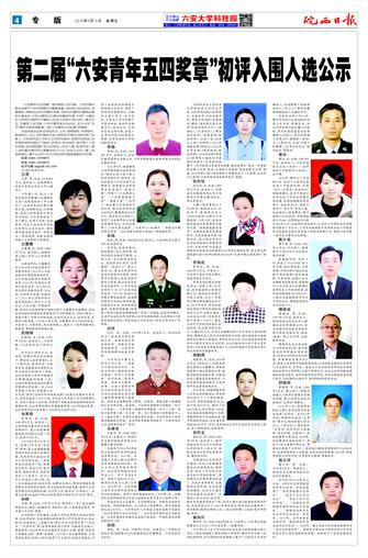 第二届“六安青年五四奖章”初评入围人选公示