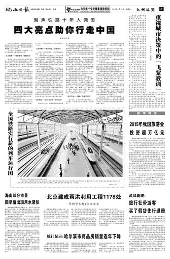 聚焦铁路十年大调图四大亮点助你行走中国⊙全国铁路实行新的列车运行图⊙海南部分市县因旱情出现用水紧张⊙北京建成雨洪利用工程1178处年均节水超1亿立方米⊙统计显示:哈尔滨市商品房销量连年下降⊙重视城市决策中的“飞絮教训”⊙2015年我国旅游业投资超万亿元⊙武汉新规:旅行社带游客买了假货先行退赔⊙⊙⊙⊙⊙⊙⊙⊙⊙⊙⊙⊙⊙⊙⊙⊙⊙⊙⊙⊙⊙⊙⊙⊙⊙⊙⊙⊙⊙⊙⊙⊙⊙⊙⊙⊙⊙⊙⊙⊙⊙⊙⊙⊙⊙⊙⊙⊙⊙⊙⊙⊙⊙⊙⊙⊙⊙⊙⊙⊙⊙⊙⊙⊙⊙⊙⊙⊙⊙⊙⊙⊙⊙⊙⊙⊙⊙⊙⊙⊙⊙⊙⊙⊙⊙⊙⊙⊙⊙⊙⊙⊙⊙