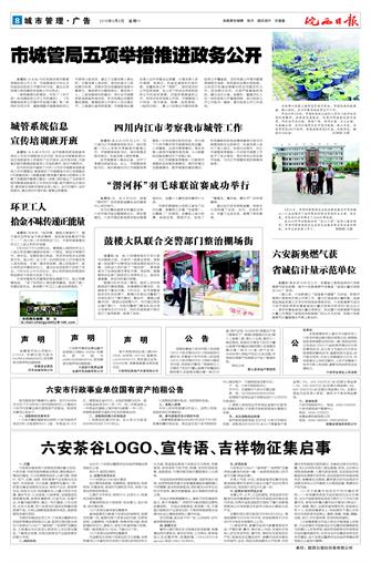 市城管局五项举措推进政务公开⊙城管系统信息宣传培训班开班⊙环卫工人拾金不昧传递正能量⊙四川内江市考察我市城管工作⊙“淠河杯”羽毛球联谊赛成功举行⊙鼓楼大队联合交警部门整治棚场街⊙图片新闻⊙六安新奥燃气获省诚信计量示范单位⊙便民资讯⊙六安茶谷LOGO、宣传语、吉祥物征集启事⊙⊙⊙⊙⊙⊙⊙⊙⊙⊙⊙⊙⊙⊙⊙⊙⊙⊙⊙⊙⊙⊙⊙⊙⊙⊙⊙⊙⊙⊙⊙⊙⊙⊙⊙⊙⊙⊙⊙⊙⊙⊙⊙⊙⊙⊙⊙⊙⊙⊙⊙⊙⊙⊙⊙⊙⊙⊙⊙⊙⊙⊙⊙⊙⊙⊙⊙⊙⊙⊙⊙⊙⊙⊙⊙⊙⊙⊙⊙⊙⊙⊙⊙⊙⊙⊙⊙⊙⊙⊙⊙