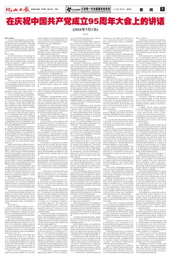 在庆祝中国共产党成立95周年大会上的讲话(2016年7月1日)