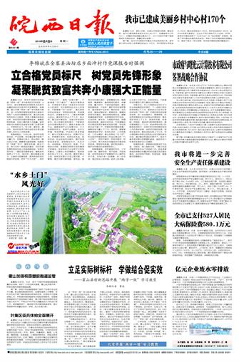 裕安区青山乡土门店村新桥中心村位于裕安区最南端,是中国工农红军许继慎将军的故乡,2014年被列为省级重点示范村。在建设过程中,该中心村因地制宜,注重保护与挖掘特色,紧紧围绕“将军故里、水乡土门”这一主题,广泛开展沟塘渠整治,连片发展大棚蔬菜、水产养殖、休闲观光等特色农业,并结合许继慎将军故居、纪念馆以及周边自然湿地等有利资源,谋划发展近郊旅游,开辟了一条绿色发展新路子。图为航拍的裕安区青山乡土门店行政村新桥中心村。