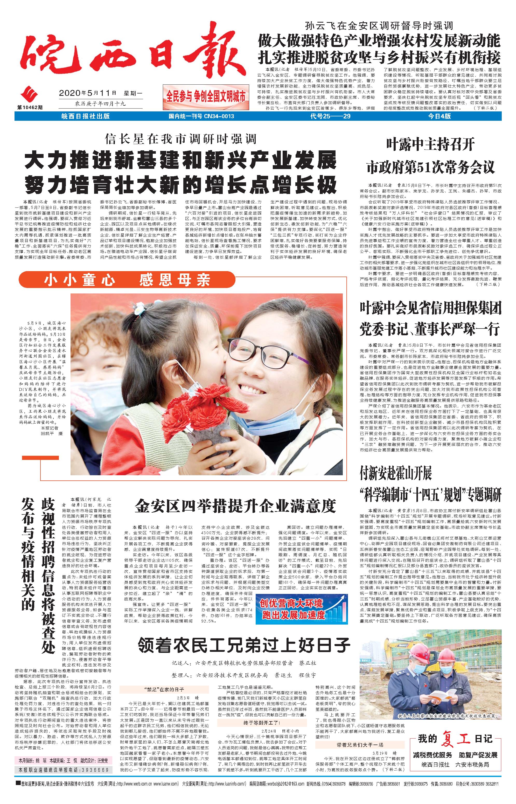 “禁足”在家的日子 2月3日 晴 今天已是大年初十,搁以往建筑工地都基本开工了。但今年……记得春节前最后一次和工友们吃饭时,我还当场保证今年带着兄弟们大发展。正是因为一直以来从未亏待过跟我一起干的这群农民工兄弟,他们相信我说的,无论我到哪儿接活,他们都始终不离不弃地跟着我。但这些年过来,他们跟我一样大多都上了岁数,时常想家里的亲人们,不怎么愿意天南海北地到外地干工地了,就想着离家近点,能隔三差五地回趟家看看一家子老小。本想着今年终于可以实现愿望了,但刚看到最新的疫情动态,六安全市又新增确诊病例7例,新增疑似病例17例,我的心一下子又紧了起来,防疫形势不容乐观,工地复工几乎也是遥遥无期。 严格管控是必须的,只有严格管控才能杜绝疫情传播,前几天我们新城春天小区业主群里自发地召集志愿者值班值守,我觉得可以去试一试。虽然我已年过半百,虽然我不能像医护人员那样在一线抗“疫”,但我也可以贡献自己的一份力量。 终于等到开工了! 2月24日 阴有小雨 今天心情很好,三十铺桃李园项目部开了会,作为瓦工清包负责人,我去参加了会议。对于人员返岗的问题,我倒是信心满满。我带的这帮工友都是老家人,春节期间也都没有去过外地,今晚电话基本都通知到位,就等工地定具体开工时间了,有几个离得远的,到时我再让家里孩子开车去接下就差不多。听到就要开工干活了,几个工友都特别高兴,这个时间去外地务工也是十分困难的。大家都说“蔡老板英明”,夸的我心里美滋滋的。 马上就要开工了,我也得跟小区物业和志愿者团队说下,小区值班值守志愿服务就不能再干了,大家都高兴地为我送行,复工是众望所归! 带着兄弟们大干一场 3月19日 晴 今天,我在开发区这边注册成立了“锦航劳保服务部”个体工商户,整个流程办下来就个把小时,为高效的政务服务点个赞。 (下转二版) (上接一版)现在政府为保障农民工工资,要建设方的财务根据政策规定按月结算工资,支付相关费用,但要求我们提供劳务税票,去办税服务大厅或邮储银行代开票虽也方便,但工友们大多文化低,基本上都还要我陪同去,多多少少要花点时间和精力,工期这么赶,真是没时间。前段时间经过几番打听,注册个体劳务公司就可以自行开具劳务税票,个把小时,轻轻松松就把以前的大问题解决了。听税务窗口的同志说,“在3月1日至5月31日,像我这样的增值税小规模纳税人,适用3%征收率的应税销售收入,减按1%征收率征收增值税。”现在国家的优惠政策是越来越亲民了,从免交农业税到现在的减税降费、支持疫情防控和企业复工复产税费优惠政策,我也算亲历了几次与税收有关的历史性时刻。 根据我的判断,未来几年,我国建筑市场依然将保持较高增速。我有个想法,把这个劳务服务部发展壮大,帮着农民工兄弟们找到稳定的工作、挣到稳定的收入,领着他们过上好日子。