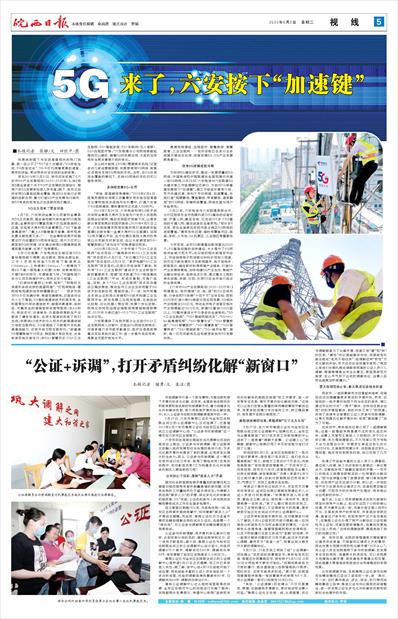 ■本报记者 张静/文 田凯平/图 如果说到眼下与生活息息相关的热门话题,那一定少不了“5G”这个关键词。“4G改变生活,5G改变社会”,5G不仅代表着更高的速度、更快的体验,更会带来社会生活的全新变革。 早在2019年12月31日,我市印发实施了《六安市5G产业发展规划(2020-2025年)》。该《规划》是全省首个关于5G产业发展的顶层设计,指导六安5G发展率先进入快车道。眼下,我市正加快实现5G基础设施全覆盖,推动5G在各行业领域的创新应用,着力打造5G产业发展先行城市,而5G带来的改变也正在逐渐向我们靠近。 5G让生活有了更多可能 4月7日,六安移动金寨分公司宣布金寨县内5G正式商用,是全省范围内率先宣布5G商用的县。金寨移动5G覆盖范围不仅包括县城核心区域,还包括大湾村和天堂寨景区。“5G下载速度真是快”、“戴上AR眼镜看天堂寨,居然和身在景点感觉差不多。”……在金寨移动燕子河路营业厅内设置的5G现场体验区,用户不仅可以感受到5G的快捷,还可通过使用AR眼镜身临其境观看天堂寨、红军广场等景观。 5月15日凌晨,六安电信在主城区进行5G基站商用能力调测,经过测试,指标全部达标,工作人员现场体验5G网络下载速率达1158Mbps,上传速率113Mbps。“一般情况下用4G下载一部电影大约要1分钟,如果使用5G只要5到6秒即可,可谓速度飞快。”中国电信六安分公司无线维护中心项林主任介绍道。 “打游戏时最担心卡顿、延时”,“网购时尤其是秒杀活动拼的就是网速”,“打视频电话、看网络电视遇到信号转圈圈很怂”……很多市民对5G不仅充满好奇,更是充满期待。记者走访业内人士了解到,5G指的是通信技术的版本号,全称是第五代移动通信技术,能提供高速率、低时延、可靠安全的增强型移动宽带服务。在4G时代,移动支付、共享单车、外卖服务等新生产业都有了爆发性增长,也很大程度的改变了我们生活。如果说4G技术的引入把手机数据通信能力彻底互联网化,5G则是除了不断提升手机数据通信能力,还将开启万物互联时代。“新基建5G智慧赋能千行百业,释放强大带动效应,关系到老百姓衣食住行。如5G+智慧农业、5G+工业互联网、5G+智能家居、5G+车联网(无人驾驶)、5G+远程医疗等。”六安联通分公司网络部副经理肖汉山感叹,随着5G的发展应用,大家的生活将发生更多意想不到的变化。 怎么样才能用上5G呢?需要换手机吗?记者走访几家运营商获悉,如果想使用5G网络,前提必须拥有支持5G网络的手机。当然,在5G没有完全覆盖的情况下,支持4G网络的手机仍可以继续使用。 多领域发展5G+应用 “声音、图像都非常清晰!”2019年6月4日,迎驾贡酒股份有限公司董事长倪永培在迎驾酒文化博物馆成功连线市长叶露中,打通六安首个5G视频通话,意味着我市正式进入5G时代。 2019年7月26日,六安电信利用5G技术成功实现金寨县大湾村卫生室与六安市人民医院远程会诊联网,推动优质医疗资源下沉,让更多群众享受到更好的医疗服务。2020年4月21日上午,六安电信携手网易安徽共同打造旅游体验直播《云游安徽—金寨大湾村5G云直播》,运用5G和天翼云平台,全方位展示美丽大湾村的秀丽山水和新农村新生活,也让大家感受到5G+智慧旅游让“诗与远方”的畅想接近现实。 2020年2月28日,六安市首个“5G+工业互联网”试点项目—“瀚海新材料5G+工业互联网”项目签约。4月21日,“长江精工5G+工业互联网”项目签约。4月24日,“索伊电器5G+工业互联网”项目签约。记者从市经信局了解到,我市将“5G+工业互联网”建设作为企业转型升级的重要抓手,搭建“技术新星(5G)+制造潮流(工业互联网)”平台,形成可复制、可推广经验。目前,多个“5G+工业互联网”试点项目建设正稳步推进,推动全市工业企业实现基于5G技术的创新应用、智能改造。下一步,我市将重点支持企业利用云资源和5G技术构建工业互联网平台,研发发展工业视觉检测、无线自动化控制、云化机器人等应用,发展个性化定制、网络化协同和远程运维服务等智能制造新模式,2020年力争打造5-10个“5G+工业互联网”试点示范。 六安联通除了与我市部分企业进行5G+工业互联网深入对接外,还结合5G网络优势特点,对原承建六安市医学影像云、医疗应急急救等重点项目系统升级工作,进一步提升项目效率,提高全市医疗救治水平。 高清视频通话、远程医疗、智慧旅游、智慧教育、工业互联网……我市目前已在多行业多领域开展试点应用、深度发展5G,5G产业发展颇具潜力。 我市5G发展成效可期 为加快5G建设步伐,建设一张高质量的5G网络,中国电信和中国联通在全国范围内共建一张5G网络。5月28日,六安电信与六安联通5G共建共享工作组揭牌仪式举行,为我市5G新基建发展按下“加速键”。据工作组组长高军介绍,双方共建共享,有利于节约资源,加速覆盖,共同打造“规模翻倍、覆盖翻倍、带宽翻倍、速率翻倍”的5G网络,保障网络覆盖、网络性能与用户体验领先。 5月以来,六安电信与六安联通紧密合作,分片区陆续在全市范围内进行5G基站的设备安装、开通入网。截至目前,已完成100多个5G基站的开通入网,建设进度在全省领先。“预计在6月底,将在全省率先实现市县主城区5G网络的连续覆盖。”高军告诉记者,届时将覆盖市区、县城、学校、火车站、5A风景区、工业园区等重要场景。 今年年底,全市5G新建基站数有望达2000个。5G基础