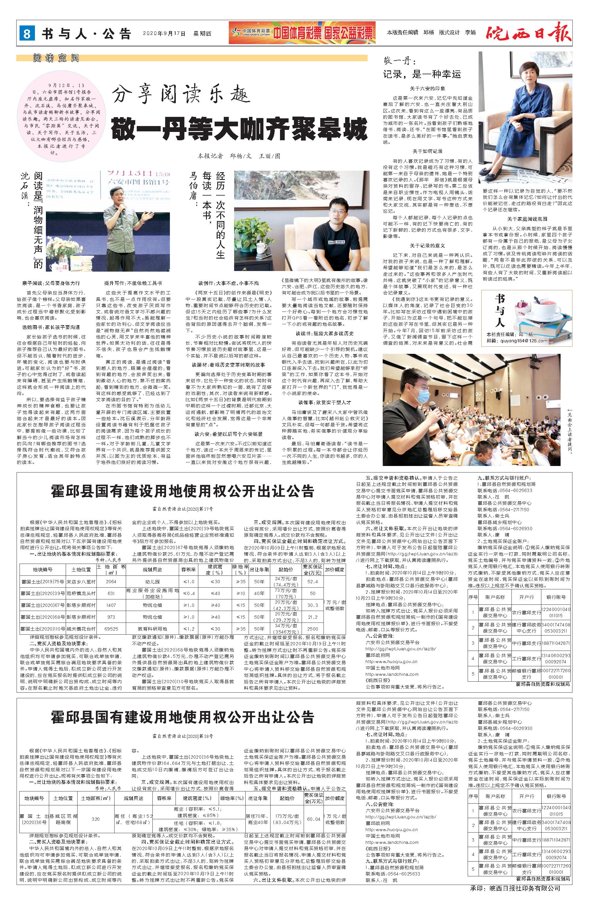 新闻 时间:2020年09月17日 来源:皖西日报