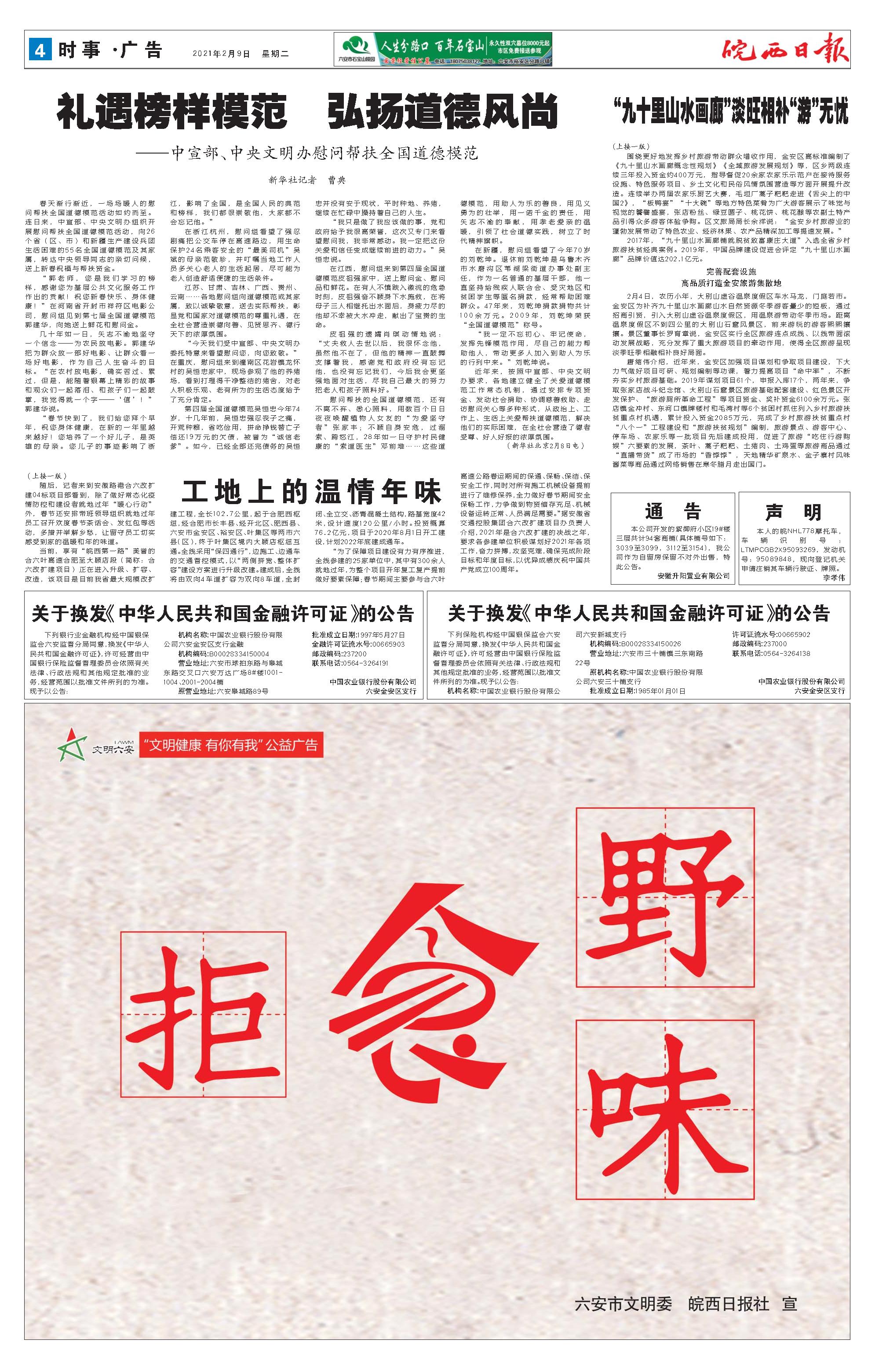 临近春节,合肥至六安至大顾店高速改扩建项目家住外地的一线建设者们纷纷选择就地过年,争取早日完成建设目标。虽不能与家人团聚,但“家的味道”却没有缺席。 2月4日下午,记者来到中铁四局合六高速改扩建工程03标段项目部,打算就地过年的广大建设者们正在搬运大米、食用油、肉品等春节物品。该项目部负责人郭小恩指着仓库里堆满成山似的年货高兴地说:“我们除了做好就地过年员工的春节期间生活保障外,在做好疫情防控的基础上,还安排了一系列迎新春、闹新春文体活动,尽力让每一位留在工地过年的建设者们感受到家的温暖。” 他乡是故乡,就地过大年。为关爱建设者就地过春节,中铁四局合六高速改扩建工程03标段项目部积极推出一系列暖心举措,他们已提前发放了《关于春节期间在务工地过节的倡议书》,给务工人员家属发出一封关爱信,提前收集农民工春节期间工作、生活等方面的意见和建议,科学制订饮食、文化等各类春节“套餐”。同时他们还为就地过年员工进行春节健康体检,备足疫情防控爱心包(口罩、酒精、消毒液、免洗手凝胶、急救包等),组织开展贴窗花、挂灯笼、猜灯谜等工地除夕文体活动,并为每人发放“新年红包”和“年货礼包”等。 “2021年春节,由于工作和疫情原因,我打算留在六安过年,不回老家了。虽然今年不能与家人团聚,但项目部各方面都考虑得非常周到,特别是春节假日期间,项目部不仅严格落实国家三倍加班工资政策,还将组织工地年夜饭、年货大礼包等多种活动,让我们这些留守工友在工地也能找到在家过年的味道。”来自陕西渭南的工程技术人员张昆开门见山地说。“今年春节不回去了,家人也很理解,等过了年,疫情风险小了,再回去看他们。” (下转四版) (上接一版) 随后,记者来到安徽路港合六改扩建04标项目部看到,除了做好常态化疫情防控和建设者就地过年“暖心行动”外,春节还安排带班领导组织就地过年员工召开欢度春节茶话会、发红包等活动,多措并举解乡愁,让留守员工切实感受到家的温暖和年的味道。 当前,享有“皖西第一路”美誉的合六叶高速合肥至大顾店段(简称:合六改扩建项目)正在进入升级、扩容、改造,该项目是目前我省最大规模改扩建工程,全长102.7公里,起于合肥西枢纽,经合肥市长丰县、经开北区、肥西县、六安市金安区、裕安区、叶集区等两市六县(区),终于叶集区境内大顾店枢纽互通。全线采用“保四通行”,边施工、边通车的交通管控模式,以“两侧拼宽、整体扩容”建设方案进行升级改建。建成后,全线将由双向4车道扩容为双向8车道,全封闭、全立交、沥青混凝土结构,路基宽度42米,设计速度120公里/小时。投资概算76.2亿元,项目于2020年8月1日开工建设,计划2022年底建成通车。 “为了保障项目建设有力有序推进,全线参建的25家单位中,其中有300余人就地过年,为整个项目开年复工复产提前做好要素保障;春节期间主要参与合六叶高速公路春运期间的保通、保畅、保洁、保安全工作,同时对所有施工机械设备提前进行了维修保养,全力做好春节期间安全保畅工作,力争做到物资储存充足、机械设备运转正常、人员满足需要。”据安徽省交通控股集团合六改扩建项目办负责人介绍,2021年是合六改扩建的决战之年,要求各参建单位积极谋划好2021年各项工作,奋力拼搏,攻坚克难,确保完成阶段目标和年度目标,以优异成绩庆祝中国共产党成立100周年。