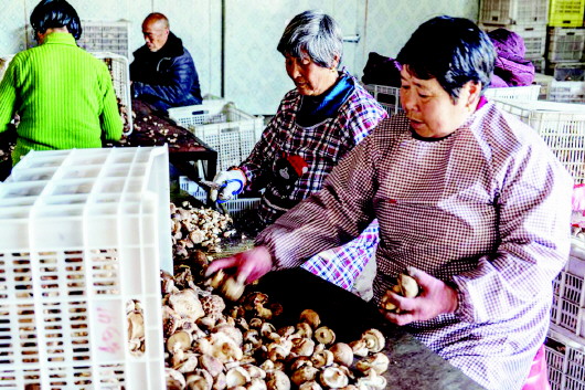 2月19日,在金寨县铁冲乡“农耕年华”农业发展有限公司上班的叶祖华等一帮老人们正在分拣香菇。该公司坚持用工不讲条件、不设门槛,提供力所能及的用工岗位,使得脱贫户中的老弱病残都能有每月不低于2000元的稳定收入。 张光照 钟翔 文/图