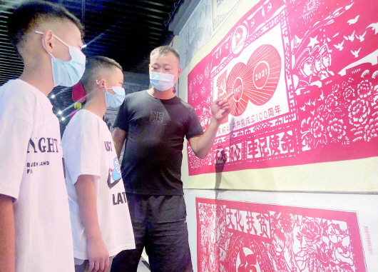 7月19日至8月1日,由市文化和旅游局主办的“非遗传承展绝艺,百年华诞颂党恩”——庆祝中国共产党成立100周年非遗作品展,在市文化馆民俗展厅开展。由我市非遗代表性传承人创作的百余幅剪纸、烙画、木刻、玉石雕、竹编、根艺等非遗作品紧扣主题,以较高的观赏性和文化内涵,展现了六安老区人民对党、对伟大祖国的赞颂与热爱。图为市民在观看剪纸作品。 本报记者 田凯平 摄