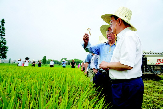 7月19日,专家们在查看“中科发早粳1号”的稻穗。 当日,一种早粳稻新品种在江西省上高县通过测产验收。这意味着我国双季早粳稻实现了突破,南方地区可以在7月下旬收割粳稻,人们今后有望提前一个季度吃上新粳米。 此前,我国双季早稻品种均为籼稻。早籼稻一般在3月中下旬播种,7月中下旬收割。早籼稻品种尤其是长江中下游的品种,大部分用作储备粮或工业用粮。 同早籼稻相比,生长在高纬度地区的粳稻品种具有抗逆性强、株型优、米质优、食味佳等优点,但一般要到10月才能收割。此次通过测产验收的早粳稻新品种,填补了这一空白。 新华社记者 周密 摄