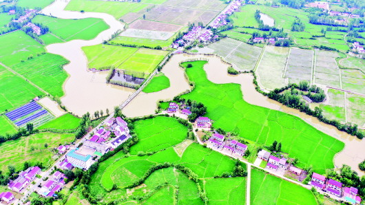 盛夏时节,位于裕安区江家店镇境内的林寨省级现代农业示范区林木葱郁,农田里秧苗生长旺盛,生机勃勃,与弯弯河道、乡村公路、错落民居相映成景,构成一幅夏日田园风景画。 近年来,裕安区江店镇因地制宜通过发展稻虾轮作、生态农业,大力推进高标准农田建设、引进现代农业科技等提升农业质量效益,带动群众增收致富,为乡村全面振兴夯实产业之基。 本报记者 田凯平 摄