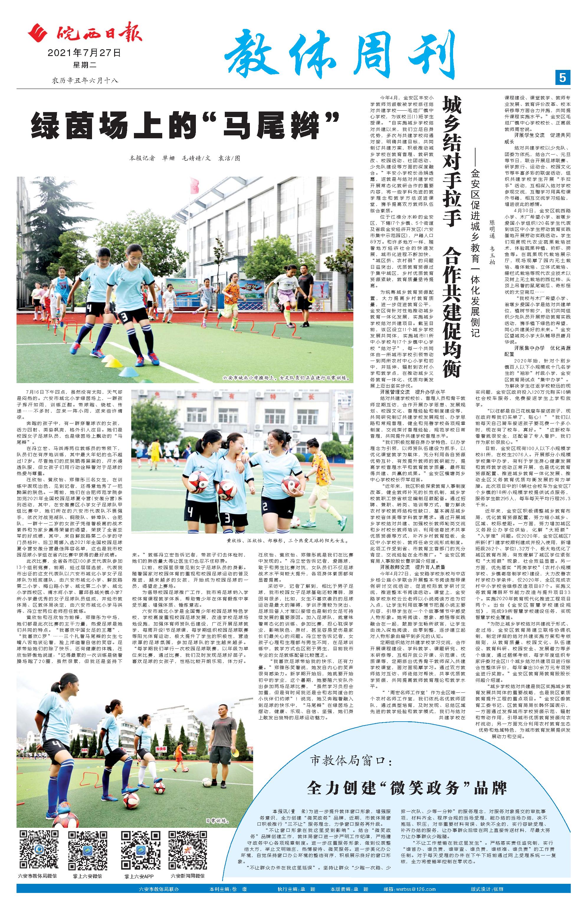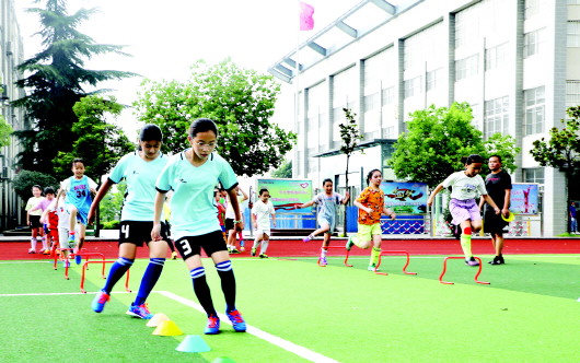 7月16日下午四点,虽然没有太阳,天气却是闷热的。六安市城北小学绿茵场上,一群孩子挥汗如雨,训练正酣。带球跑、绕桩、传递……不多时,忽来一阵小雨,送来些许清凉。 奔跑的孩子中,有一群穿着球衣的女孩,活力四射、英姿飒爽,格外引人注目。她们是校园女子足球队员,也是绿茵场上飘动的“马尾辫”。 在冯立宏、马洪涛两位教练员的带领下,队员们在有序地训练,其中最大年纪的也不超过12岁。尽管她们的皮肤晒得黑黑的,汗水浸透队服,但女孩子们用行动诠释着对于足球的热爱与尊重。 汪欣怡、黄欣怡、郑雅彤三名女生,在训练中表现出色,见到记者,还得意地秀了一把黝黑的肤色。一周前,她们在合肥师范学院参加完2021年全国校园足球夏令营(安徽分营)系列活动,其中,在安徽赛区小学女子足球队甲组比赛中,她们所在的六安市代表队不畏强手,依次对战芜湖队、铜陵队、蚌埠队、合肥队,一群十一二岁的女孩子凭借着极高的战术素养和为家乡赢得荣誉的渴望,荣获了全省亚军的好成绩,其中,来自解放路第二小学的守门员杨叶、后卫周娜入选2021年全国校园足球夏令营安徽分营最佳阵容名单,这也是我市校园足球小学组在省内比赛中获得的最好成绩。 此次比赛,全省各市区100多支代表队参加13个组别竞赛,前期,经过层层选拔,代表我市出征的这支代表队以六安市城北小学女子足球队为班底建队,由六安市城北小学、解放路第二小学、梅山路小学、城北第二小学、城北小学西校区、清水河小学、霍邱县城关镇小学7所小学最优秀的女子足球队员组成,并经市教体局、区教体局决定,由六安市城北小学马洪涛、冯立宏两位老师担任教练。 黄欣怡和汪欣怡为前锋,郑雅彤为中场,她们都是此次比赛的主干力量,热爱足球是她们共同的特点。“我喜欢中国女足的王霜”,“我喜欢C罗”……三个扎着马尾辫的女生七嘴八舌地谈论着,脸上洋溢着自信的笑容。足球带给她们的除了快乐,还有健康的体魄,汪欣怡骄傲地说道:“记得最累的一次训练是绕着操场跑了20圈,虽然很累,但我还是坚持下来。”教练冯立宏告诉记者,带孩子们去体检时,她们的肺活量大得让医生们也忍不住称赞。 以前,校园里很难见到女子足球队员的身影。随着国家对校园体育的重视和校园足球运动的普及推进,越来越多的女孩,开始成为校园足球的一员,渴望走上赛场。 为倡导校园足球推广工作,我市将足球纳入学校体育课程教学体系,帮助青少年在体育锻炼中享受乐趣、增强体质、锤炼意志。 六安市城北小学是全国青少年校园足球特色学校,学校高度重视校园足球发展,改造学校足球场地设施,加强体育师资队伍建设,广泛开展足球教学,每周开设1节足球课,每学期组织校园足球联赛等阳光体育运动,极大提升了学生的积极性,营造浓厚的足球氛围,参加足球队的学生越来越多。“每学期我们举行一次校园足球联赛,以年级为单位来比赛,通过比赛,我们及时发现足球好苗子。喜欢足球的女孩子,性格比较开朗乐观,体力好。汪欣怡、黄欣怡、郑雅彤就是我们在比赛中发现的。”冯立宏告诉记者,爱踢球,敢于和男生比赛对抗,女队员们不仅足球战术水平有较大提升,各项身体素质都有显著提高。 采访中,记者了解到,相比于男子足球,我市校园女子足球基础还较薄弱,原因有很多,比如,女生不喜欢激烈的足球运动是最大的障碍,学训矛盾较为突出、足球后备人才难以接续也是制约女足可持续发展的重要原因。加入足球队,就意味着常态化的训练、参加比赛,担心耽误学业,影响肤色、身材,甚至容易受伤是家长们最关心的问题。冯立宏告诉记者,女孩子心理和生理都与男生不同,在足球训练中,教学方式也区别于男生,目前我市专业的女足教练配备比较匮乏。 “我喜欢足球带给我的快乐,还有力量。”郑雅彤笑着说,她发自内心的笑声很有感染力。新学期开始后,她就要开始初中的学业,这个暑期,她要随六安队外出参加两场足球比赛,“虽然学习负担会加重,但是有时间我还是会和志同道合的小伙伴们约球”!说完,她又奔跑着融入到足球的快乐中,“马尾辫”在绿茵场上摆动,健康、乐观、自信、坚强,她们身上散发出独特的足球运动魅力。