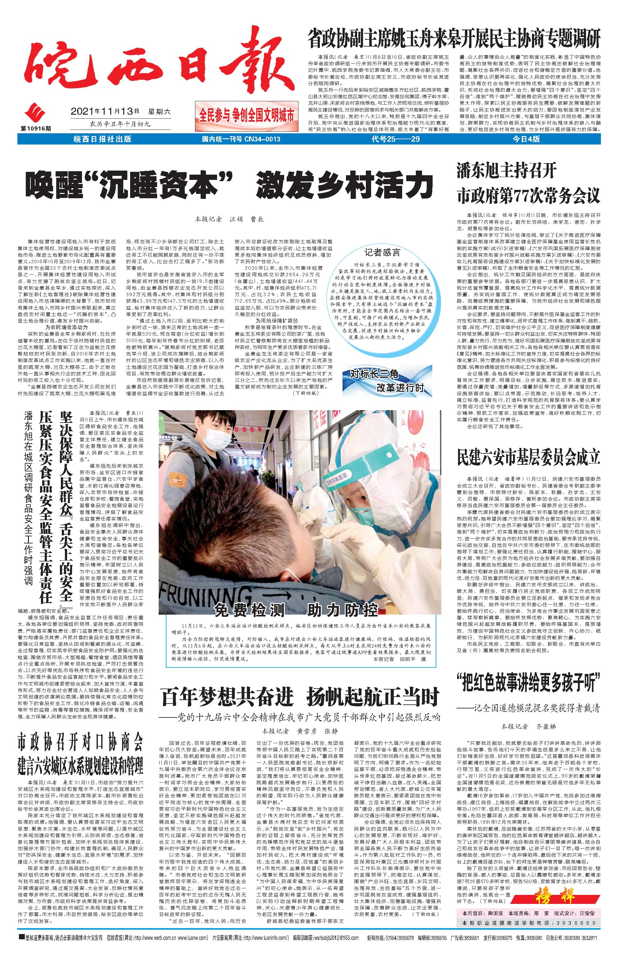 新闻 时间:2021年11月13日 来源:皖西日报
