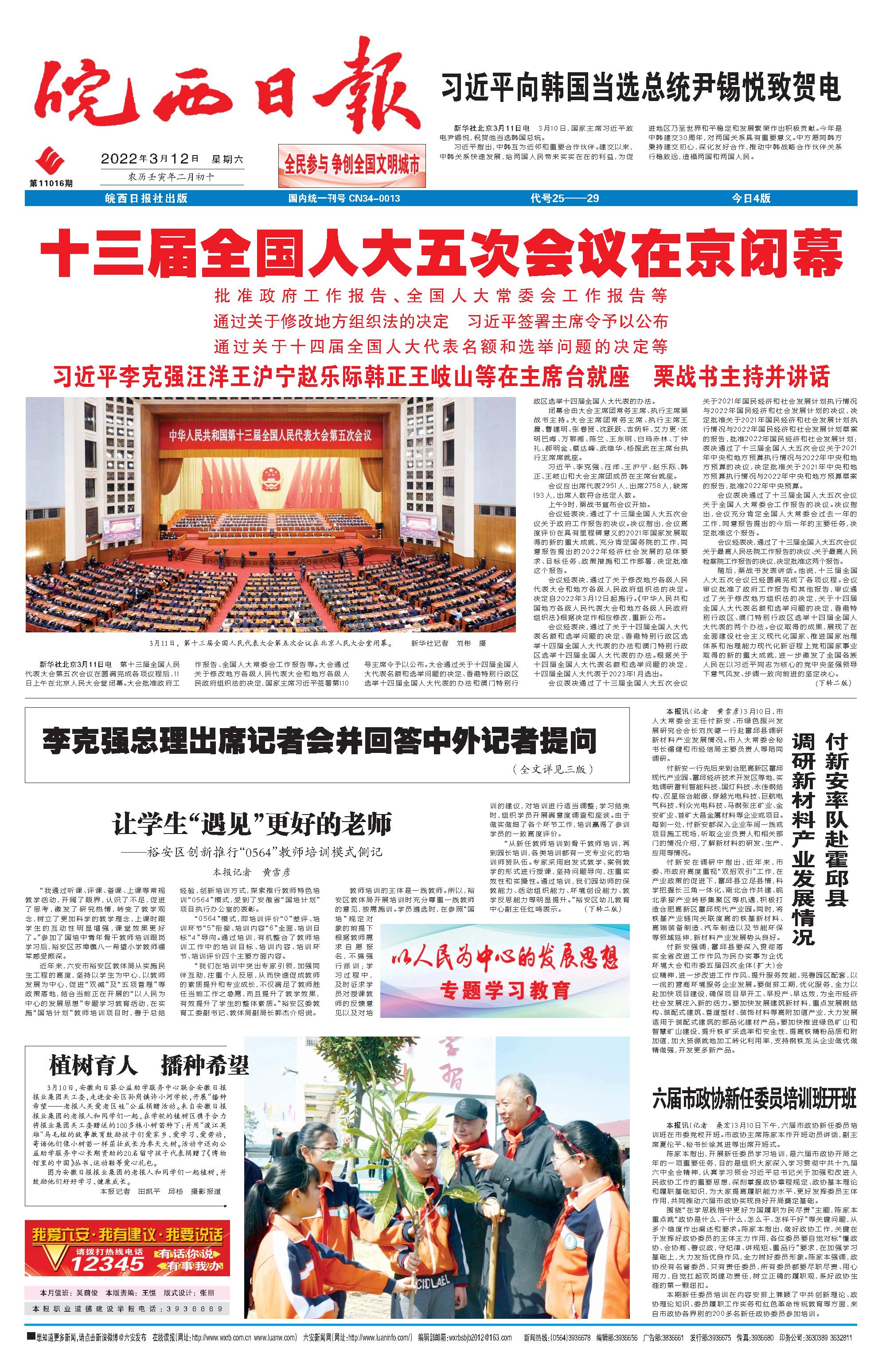 新闻 时间:2022年03月12日 来源:皖西日报