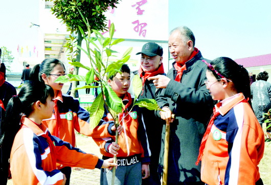 3月10日,安徽向日葵公益助学服务中心联合安徽日报报业集团关工委,走进金安区孙岗镇许小河学校,开展“播种希望——老报人关爱老区娃”公益捐赠活动。来自安徽日报报业集团的老报人和同学们一起,在学校的植树区携手合力将报业集团关工委赠送的100多株小树苗种下;并用“渡江英雄”马毛姐的故事教育鼓励孩子们爱家乡、爱学习、爱劳动,寄语他们像小树苗一样茁壮成长为参天大树。活动中还向公益助学服务中心长期资助的20名留守孩子代表捐赠了《博物馆里的中国》丛书、运动鞋等爱心礼包。 图为安徽日报报业集团的老报人和同学们一起植树,并鼓励他们好好学习、健康成长。 本报记者 田凯平 邱杨 摄影报道