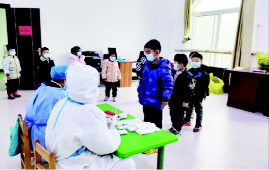 日前,舒城县山七镇启动辖区内企业、敬老院、餐饮业、建筑工地、商场、集贸市场、酒店宾馆、快递物流、学校师生等重点行业人群核酸检测工作,保证重点人员核酸检测应检尽检。图为学校检测现场,师生员工积极配合,保持一米间距,工作人员核对名单,以10名学生为一组的方式依次进行检测,现场秩序井然。 舒卫健 文/图