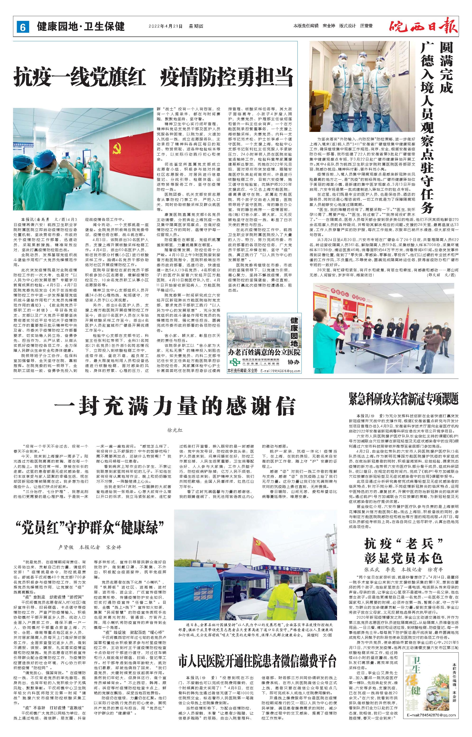 新闻 时间:2022年04月21日 来源:皖西日报
