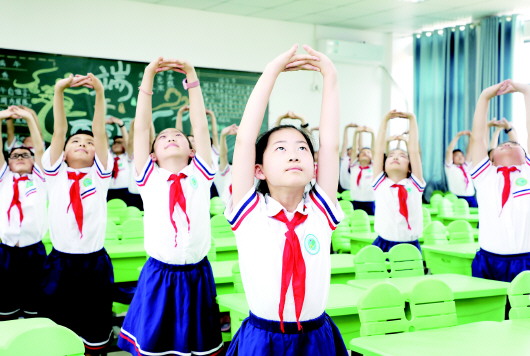 “天地玄黄,宇宙洪荒。日月盈昃,辰宿列张。”5月25日下午四点,佛子岭路小学四(9)班的学生们正在教室里齐声吟诵经典诗文《千字文》,并伴着动感的旋律做起韵律操。 学生们做的这一套课间韵律操可不简单。据校少先大队辅导员高贝介绍,《千字文》韵律操视频是学校经过精心挑选,由她根据本校学生实际情况,创造性地加入拉伸环节,并结合传统诗文的特点进行改编,之后带领部分学生录制视频,推送给各班学习。现在,每天下午第二节课后,这套《千字文》韵律操就是校园里最亮丽的风景线。这套结合传统文化的韵律操让学生们在运动过程中增强对中国传统诗词文化的学习和了解,又锻炼了坚强的意志和积极乐观的精神,是该校全面落实“双减”政策和“五项管理”的有力写照。 本报记者 毛婧婧/文 袁 洁/图
