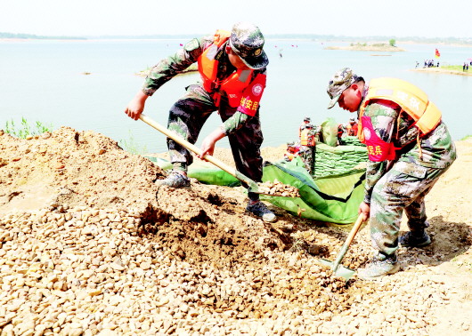 本报讯(高陈 记者 黄雪彦)“接指挥部通知,防汛大坝发现管涌险情,现需要民兵应急连迅速处置,希望同志们发扬一不怕苦、二不怕死的精神,立即遂行任务!”5月31日,在裕安区城南水利枢纽工程现场,裕安区民兵应急连副指导员符德虎发出命令,这是2022年我市防汛综合应急演练中的一个场景。 为切实做好全市防汛救灾准备工作,提升抢险队伍在实战中的应急处置能力和协调作战能力,市防汛抗旱指挥部组织开展了以“减轻灾害风险,守护美好家园”为主题的防汛综合应急演练。演练分为两个阶段实施。第一阶段的桌面推演已在市防办完成,第二阶段为现场的实战演练。 “针对汛期我市遭受持续性强降雨,围绕辖区可能出现的山洪地质灾害、堤防决口、人员被困等险情,本次演练设置了山洪地质灾害风险处置、堤防抢险、城区排涝、蓄洪区运用准备、通信及电力保障、水域救援6个科目。”市应急局局长江善林介绍道。 据了解,裕安区民兵应急连在本次演练主要参加堤防抢险阶段的科目,承担管涌抢护和构筑子堤任务。记者在现场看到,在“发生”管涌险情后,该民兵应急连迅即出动,井然有序清除管涌附近的杂草、杂树等杂物,平整地面。而后大家用土袋装土七至八成,将土袋层层垒砌紧密,前后排、上下袋交错排列,填筑围井,并在围井内由下向上铺筑粗砂、石子。围井修筑完毕后在平石子表面插入排水管,排出井内涌水。符德虎介绍道,这是通过“反滤围井”处置管涌险情的方法。 在随后进行的构筑子堤任务中,参演民兵采取土袋子堤法,用大铁锹等工具取土填袋,将土袋搬运至修筑点,并把土袋一层一层地垒砌紧密。垒砌土袋过程中上下层袋缝错开,大家在缝隙间加填散土,最终形成了高约1.5米、顶宽约1米的防水子堤。“我有机会参加这次演练,确实收获很多,对以后参加抢险救灾任务更有信心了。”民兵胡祖宝说道。 据介绍,本次防汛演练以暴雨洪涝灾害为背景,以汛情演变发展过程为主线,突出“防、抗、救”全链条一体应对、实战实训检验预案和新技术新装备实际应用。经过此次防汛演练,积累了民兵抢险救灾的经验,锤炼了应急处突的能力,提升了实战化水平,确保在人民群众需要的时候能拉得出、用得上。