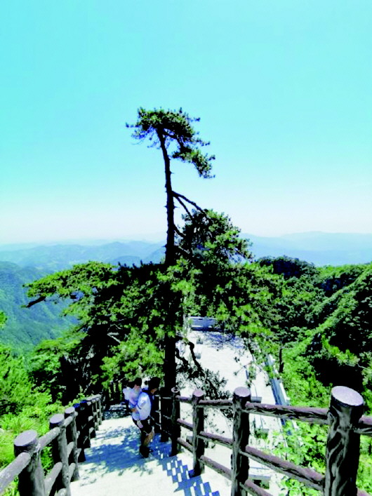 疫情散去,阳光明媚。舒城的朋友热情相邀一起畅游万佛山,去山野呼吸新鲜空气,散一散疫情宅家的沉闷,放松一下精神的压抑和心灵的疲倦。退休之后,本就喜欢游山玩水,便欣然前往。 万佛山分山脚的清凉涧景区、山腰的飞龙瀑景区、山顶的老佛顶景区三大块。我们坐客运索道下站就在铜锣峰山腰,接近老佛顶景区。 舒城朋友介绍,铜锣峰本身就是一处险峰,是一座绝壁如刀砍斧劈的山峰。山峰上有数道同心圆裂痕,远远看去就像悬挂在空中的一面大铜锣。但这都比不上万佛山最险峻的山峰“鲤鱼背”,一会我们就去攀爬,你们的腿不要打抖啊! 看指示牌,鲤鱼背是万佛山著名景点之一,是经重力崩塌、风化剥蚀而成的脊状峰,形似鲤鱼横卧在神驼峰上,两边悬崖峭壁,如同刀削斧劈,全长1.2公里,比黄山鲫鱼背更长、更险。 鲤鱼背山峰坡度接近90度的峭壁,还是在海拔1300米的崇山之上,顶上风很大,光秃秃的草都不长,下面就是万丈深渊,道路直接开凿在山脊的岩石上,最窄的地方仅有10厘米。很多人腿软手抖半途返回,我们也手脚并用,悬着心艰难探步,抖抖索索小心前行。 当我们征服恐惧,站在“鲤鱼背”顶峰时,真切感受到“无限风光在险峰”的畅快,风吹过都是甜蜜,光照过都是勇敢。俯瞰群山巍峨,苍茫叠嶂;开阔辽远,雄伟屹立。远处阡陌纵横,山村隐现,“一览众山小”的喜悦豁然直冲心间。 站在鲤鱼背上,我扭身遥望老佛顶,山壁陡峭,巍峨险峻。朋友介绍:“鲤鱼背”至“老佛顶”路段是万佛山最险峻、最陡峭的路段,也是万佛山最美的主景区。因为巨大的山势落差,使得步道循山势而建,迂回曲折通达1539米的最高顶峰。中间还有一处“关刀峰”亦是悬崖峭壁,是碎石岩石山脊路。而且“关刀峰”有一处“刀背石”,刀刃长约15米,最窄处宽度只有0.1米,刀刃与节理走向一致,两侧岩石沿斜节理面崩塌而成,又名“关刀口”、“象鼻石”、“御马朝佛”,崖高壁峭,非常危险。 道路艰难,登顶大约需要一个多小时,朋友问:“还继续上吗?” 我说:“上,当然要登顶。” 山路崎岖陡峭,经常是几十米的落差,山脊上碎石罗列,两边就是悬崖峭壁,需要有战胜困难的勇气和持久的韧性才能坚定向前。 一路风景绝佳,充满了爬山的野趣。特别是扎根于悬崖峭壁的奇松,其坚韧的毅力和顽强的生命力,令人肃然起敬。在百步云梯的山石旁,有一颗不屈服的松扎根石缝,紧贴崖壁,在悠久的岁月中,缓慢而顽强地百年生长,风霜雪雨是它的日常,日月精华是它的食粮,积极向上英姿勃发是它的风采,虽不粗壮,但虬枝峥嵘,令人过目不忘,油然钦佩。最美万佛松,又称迎客松,在通往万佛顶的路上,在最险峻的山脊,双松并肩,扎根山石,独立千年,笑迎人间。 一路攀登,山路艰难。眼前是群山巍峨,脚下是峭壁悬崖。有的地方仅容侧身通过,有的地段是一个个岩壁上凿出的脚窝,登之悚然。山道上铺就的石片是就地取材的不规则的山石,一个连着一个干石砌着,窄窄的,怪石嶙峋,惊险刺激。 拖着酸痛的腿到达览秀亭。览秀亭海拔1312米,耸立在危崖之上,四周山峰环抱,景色秀美。我们小憩片刻,补充一点食物和水,向老佛顶冲刺。终于登上万佛顶啦!山顶的石碑上书“老佛顶”三个苍劲有力的红漆大字,下面标注1539米。兴奋激动溢于言表,我手抚石碑,有一种酣畅淋漓的心满意足,有一种人逢喜事精神爽的轻松。 站在万山之巅老佛顶,油然而生一种豪迈。放眼望去,万佛山大气磅礴,巍峨险峻;群山连绵,跌宕起伏。山天一色无穷尽,峰尖耸立入云宵,大有“欲与天公试比高”的气概。立在群山之巅,罡风吹走了一切烦恼,奇丽的景色涤荡着心胸,一丝空灵玄妙袭来,清气缥缈环绕,真有“我欲乘风归去”之感,体内的俗气、浊气、废气也随着山灵精气升腾飘散。 在山顶转了一圈,发现万佛顶巴掌大的地方,还有一座“诸佛寺”。诸佛寺平顶窄身,与传统翘檐斗拱的庙宇大不同,独树一帜。诸佛寺西侧有一块神奇的山地,是“一脚踏三县”的地理标志位置。我兴奋地在这里跺了几脚,左手一指是潜山,右手一指是岳西,身后北面是舒城,南面与1488米的天柱峰遥相对峙。极目远眺,万佛湖似明镜澄碧,长江似玉带飘逸,环顾四周,大小山峰尽收眼底,宛如众佛朝拜佛祖,蔚为壮观。 美丽的万佛山,巍峨险峻是你的阳刚,泉溪潭瀑是你的阴柔。而山高峰险、奇松怪石、潭幽瀑多、云海深林、祖山佛顶才是你的全部。