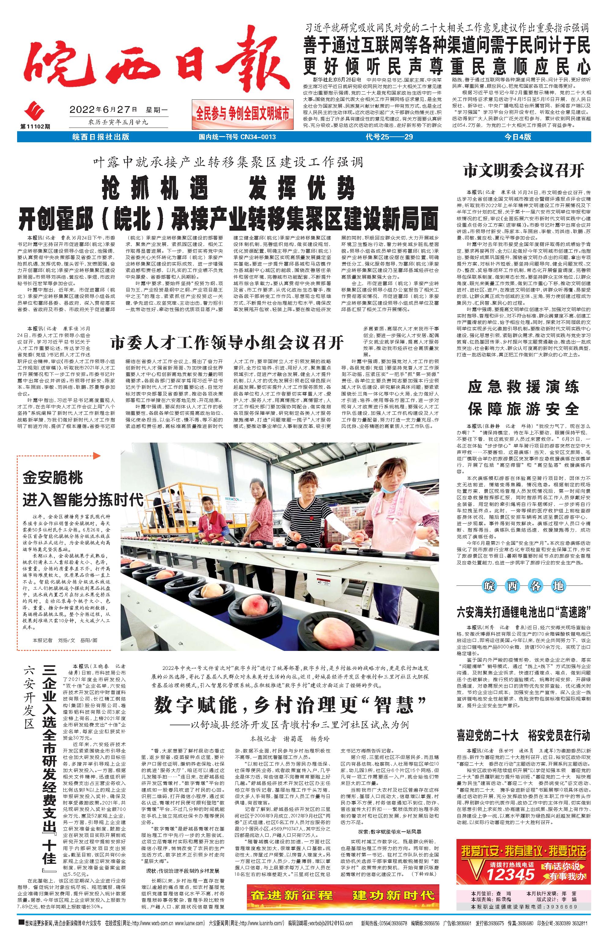 新闻 时间:2022年06月27日 来源:皖西日报