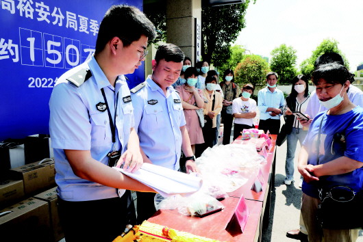 6月24日上午,市公安局裕安分局对前期侦破的侵财类案件进行集中返赃,将现金、黄金首饰、烟酒等价值约150万元的赃物归还受害群众。 今年以来,市公安局裕安分局践行“以人民为中心的发展思想”,坚持“小案快侦、抢案必破、盗案多破、有赃尽追”的侦查理念,所队联手,合成作战,坚持破案与追赃并重,切实提升广大人民群众的安全感和满意度。 本报记者 王丽 摄