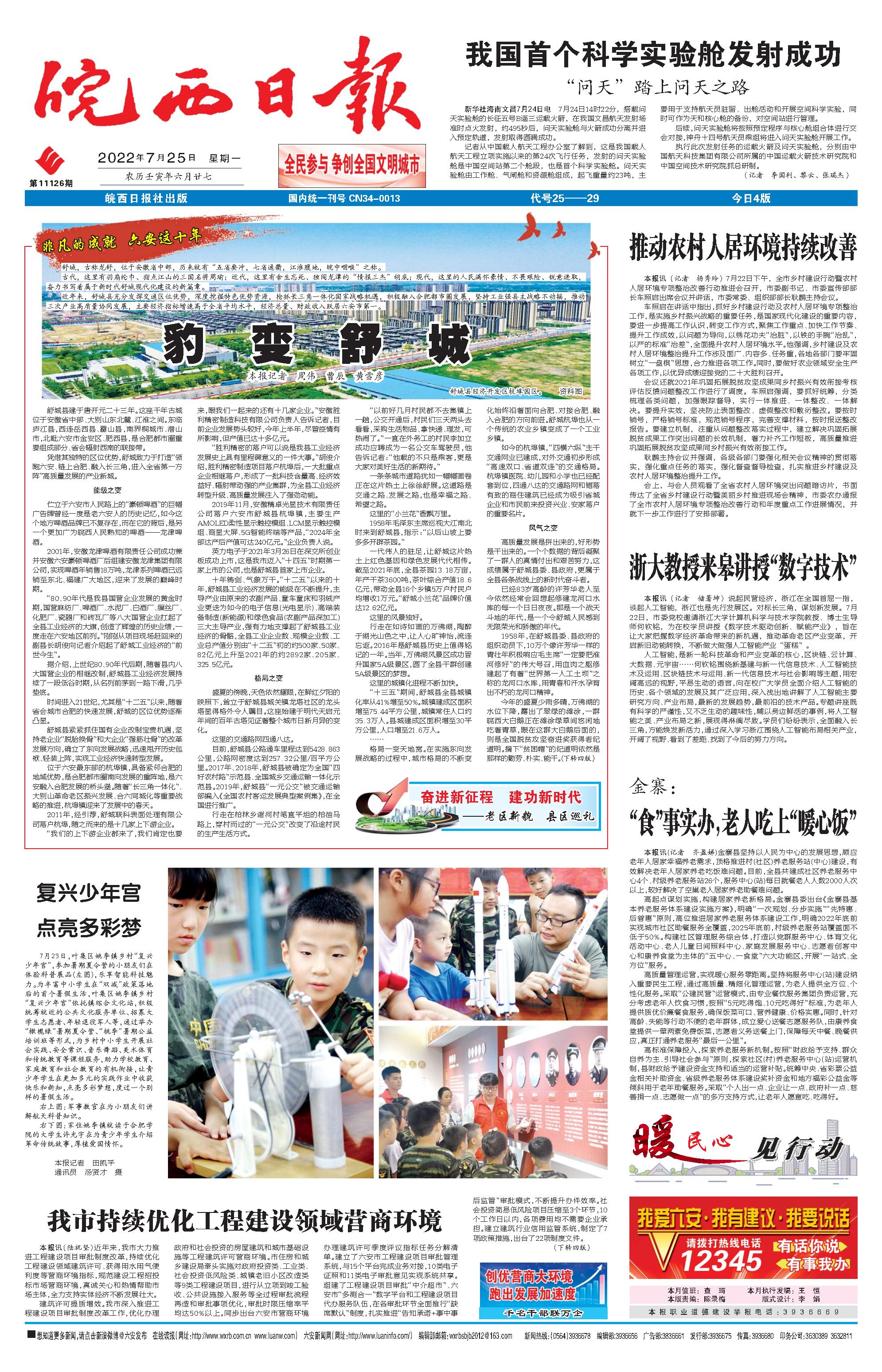 新闻 时间:2022年07月25日 来源:皖西日报
