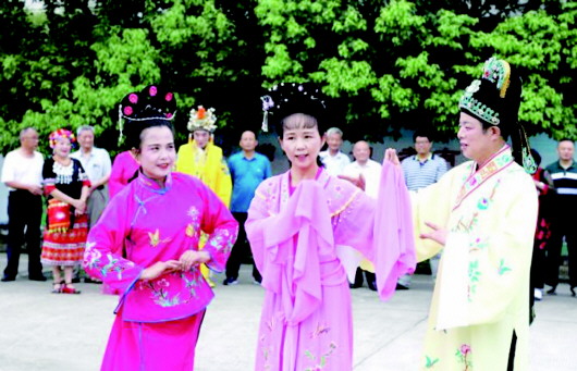 新安老年学校学员传统小戏表演引得阵阵喝彩。本报记者 袁洁 摄