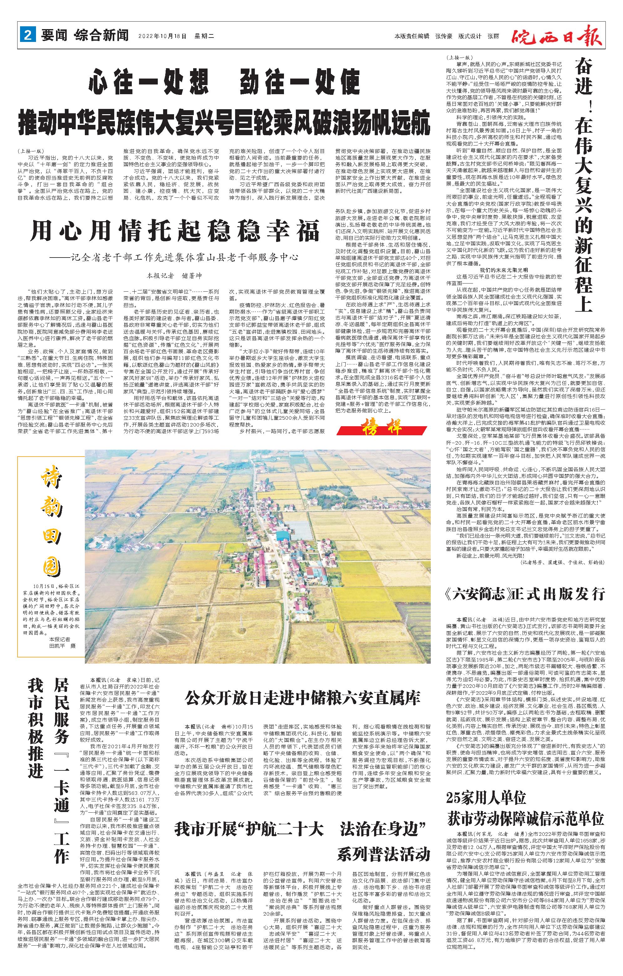 本报讯(记者 汪娟)近日,由中共六安市委党史和地方志研究室编纂、黄山书社出版的《六安简志》正式发行。该部志书简明简要并全面全新记载、展示了六安的自然、历史和现代化发展现状,是一部凝聚家国情怀、彰显文化自信的深情力作,更是一项存史资治、鉴育后人的时代工程与文化工程。 据了解,六安市社会主义新方志编纂经历了两轮,第一轮《六安地区志》下限至1985年,第二轮《六安市志》下限至2005年,与现阶段各项事业发展断限近20年,加之,两轮市级志书篇幅较大、卷帙浩繁、不便携存、不易遍览,编纂出版一部通俗简明、可读可鉴的市志简本,显得尤为迫切与必要。为此,市委史志室审时度势、抢抓机遇,集中优势力量于2020年10月启动了《六安简志》编纂工作,历时2年精编细著、深耕细作,于2022年9月底正式定稿、付梓出版。 《六安简志》采用章节体结构,横排门类,纵述史实。共设地理、红色六安、政治、城乡建设、经济发展、文化事业、社会生活、县区概览、人物9章52节,共计50万字。编修上以两轮志书为基础,去粗取精、删繁就简、延叙现状、展示发展;结构上紧密章节、整合内容、调整布局、优化类别;内容上精实自然、传承历史、展现当今、启引未来;特色上彰显红色、厚重古色、浓描绿色、擦亮彩色;力求全景式主线条精实化呈现六安自然之美、文明之美、奋进之美、发展之美。 《六安简志》的编纂出版充分体现了“奋进新时代,有我史志人”的职责、使命与担当精神,也将成为学史增信、读志用志、宣介六安、服务发展的重要市情读本,对于提升六安的知名度、美誉度和影响力,助推六安的文化软实力建设,激发广大干群的家国情怀,从而为进一步凝聚共识、汇聚力量,助力新时代幸福六安建设,具有十分重要的意义。