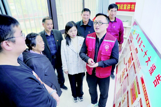 10月25日,金安区东市街道淠河社区新时代文明实践站,社区新老党员在一起学习党的二十大精神,并立足自身岗位实际,谈感悟、说变化、话担当、畅想未来。大家纷纷表示,在今后工作中,把学习党的二十大报告的体会和收获转化为实际行动,充分发挥党员先锋模范作用,帮助居民解决急难愁盼的“挠头事”,在文明创建、基层治理、为民服务等活动中贡献智慧和力量,切实提升群众的幸福感、获得感、安全感。 本报记者 田凯平 摄
