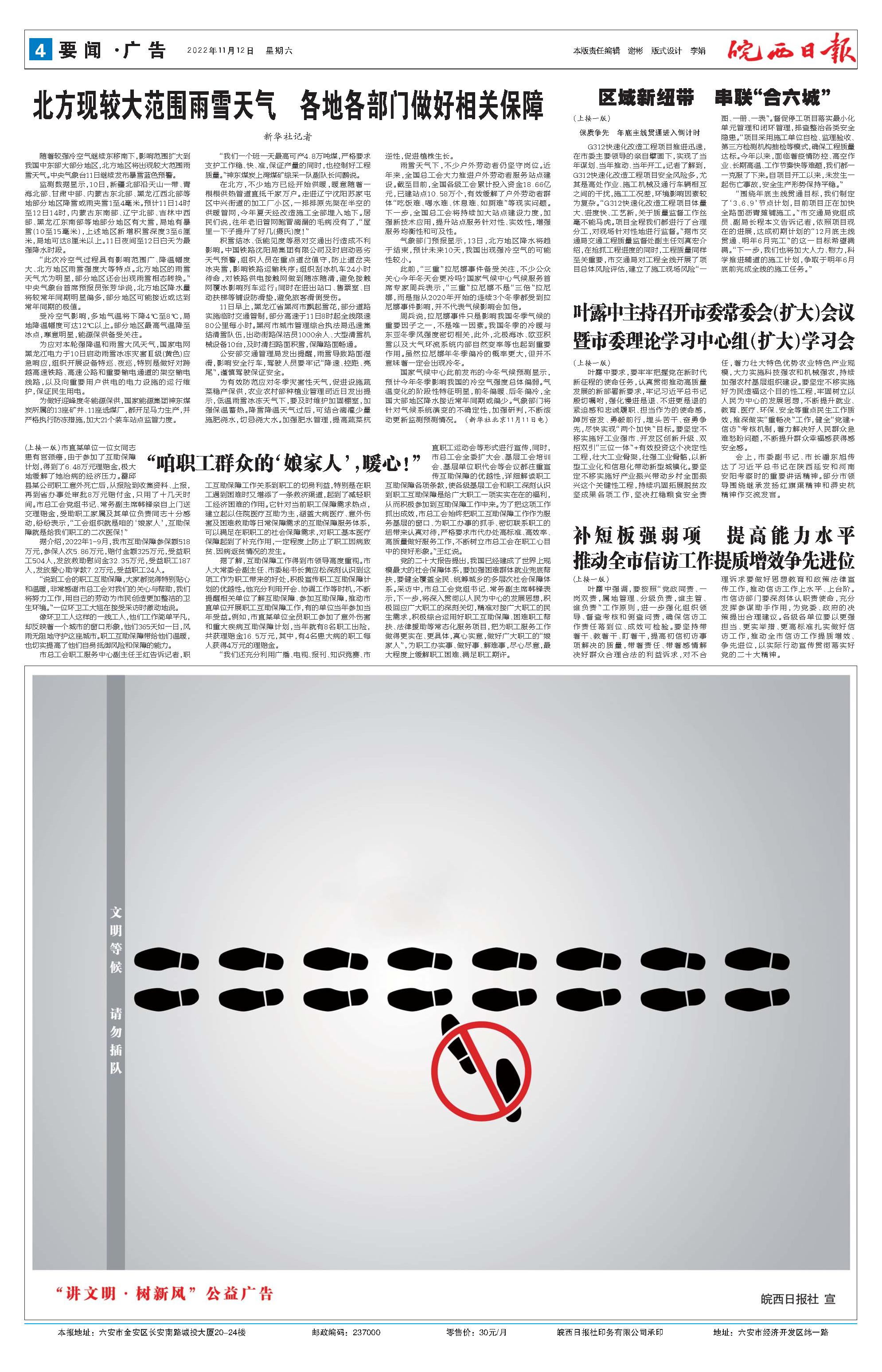 本报讯(记者 曹辰)11月10日下午,市委书记叶露中主持召开市委常委会(扩大)会议暨市委理论学习中心组(扩大)学习会,全面学习贯彻党的二十大精神,深入学习习近平总书记在陕西延安和河南安阳考察时的重要讲话精神,继承发扬红旗渠精神和淠史杭精神,从中汲取埋头苦干、奋勇争先的强大精神动力,用脑用心用力推动党的二十大重大决策部署在六安落地生根,不断开创绿色振兴赶超发展新局面。市委副书记、市长潘东旭,市领导付新安、陈家本、车照启、李敏、王红、刘洪洁、郑刚、耿鹏、苏曼等参加会议。 叶露中指出,党的二十大通过的关于《中国共产党章程(修正案)》的决议强调:“两个确立”是党在新时代取得的重大政治成果。要自觉做到政治上信赖维护习近平总书记、情感上认同热爱习近平总书记、行动上紧跟听从习近平总书记,坚持把衷心拥护“两个确立”、忠诚践行“两个维护”落实到行动上,落实到贯彻决策部署的措施上,落实到具体工作的成效上,落实到言行一致的标准上,切实把习近平新时代中国特色社会主义思想这一党的创新理论最新成果转化为埋头苦干、奋勇争先的强大动力,全力推动党的二十大精神在我市落地生根、开花结果。 叶露中强调,红旗渠精神与延安精神、太行山精神一脉相承,淠史杭精神与大别山精神一脉相承。要大力弘扬红旗渠精神和淠史杭精神,努力凝聚奋进力量,聚焦发展不足这个关键要害,大力实施绿色振兴赶超发展战略,实现老区在现代化进程中不掉队、赶上来。要从红旗渠、淠史杭精神中汲取坚持党的领导、凝聚最大合力的强大力量,确保在新征程上保持正确方向不偏航。要从红旗渠、淠史杭精神中汲取自力更生、艰苦奋斗的强大力量,奋力推动老区经济社会高质量发展。要从红旗渠、淠史杭精神中汲取不甘落后、奋勇争先的强大力量,奋力推动老区再度雄起、再上前头。 (下转四版) (上接一版) 叶露中要求,要牢牢把握党在新时代新征程的使命任务,认真贯彻推动高质量发展的新部署新要求,牢记习近平总书记殷切嘱咐,强化慢进是退、不进更是退的紧迫感和忠诚履职、担当作为的使命感,踔厉奋发、勇毅前行,埋头苦干、奋勇争先,尽快实现“两个加快”目标。要坚定不移实施好工业强市、开发区创新升级、双招双引“三位一体”+有效投资这个决定性工程,壮大工业骨架,壮强工业骨骼,以新型工业化和信息化带动新型城镇化。要坚定不移实施好产业振兴带动乡村全面振兴这个关键性工程,持续巩固拓展脱贫攻坚成果各项工作,坚决扛稳粮食安全责任,着力壮大特色优势农业特色产业规模,大力实施科技强农和机械强农,持续加强农村基层组织建设。要坚定不移实施好为民造福这个目的性工程,牢固树立以人民为中心的发展思想,不断提升就业、教育、医疗、环保、安全等重点民生工作质效,推深做实“重畅决”工作,健全“党建+信访”考核机制,着力解决好人民群众急难愁盼问题,不断提升群众幸福感获得感安全感。 会上,市委副书记、市长潘东旭传达了习近平总书记在陕西延安和河南安阳考察时的重要讲话精神。部分市领导围绕继承发扬红旗渠精神和淠史杭精神作交流发言。