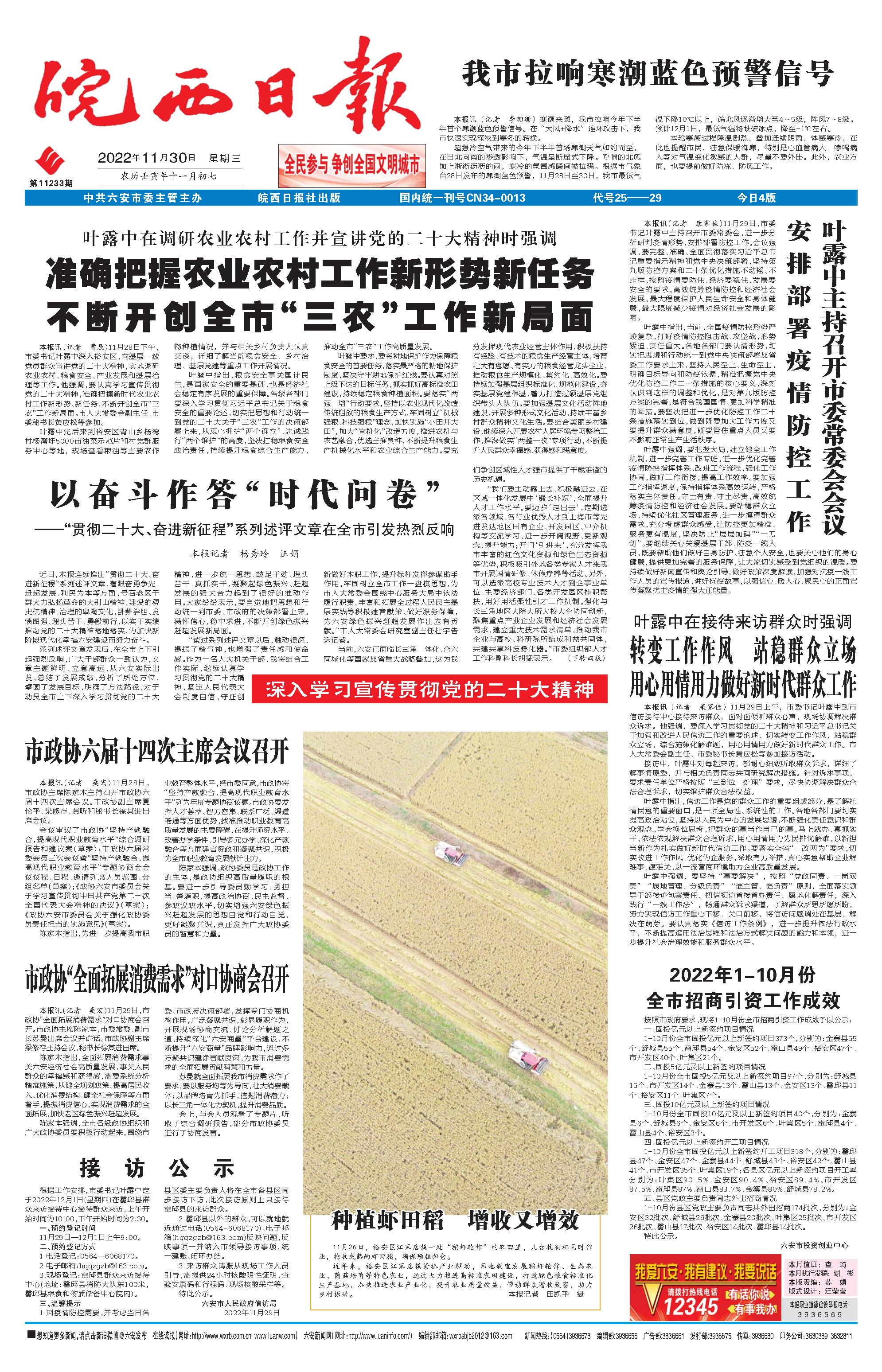 新闻 时间:2022年11月30日 来源:皖西日报