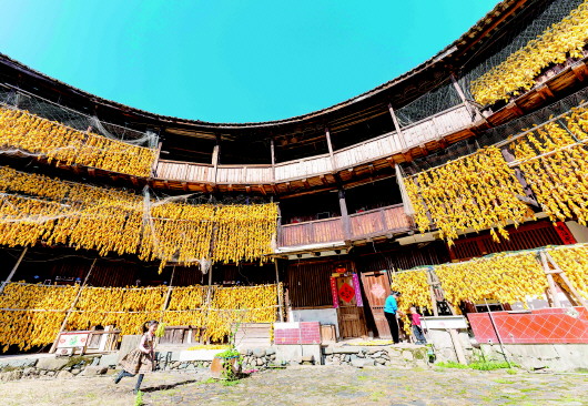 福建南靖:玉米丰收 土楼变“金”楼