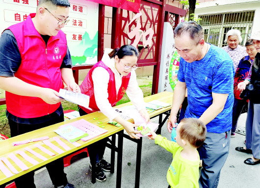 近日,金安区三里桥街道金裕社区新时代文明实践站联合金安区城管局(分类办)、六安福龙马金安区分公司开展“参与垃圾分类 共建美好家园”全国垃圾分类宣传周系列活动。 活动中,志愿者向居民发放垃圾分类宣传册,为居民讲解垃圾分类知识,同时通过垃圾分类趣味答题和有奖竞猜等游戏,让居民群众领会垃圾分类的重要性,培养“绿色、低碳、环保”的理念。 本报记者 袁洁 文/图
