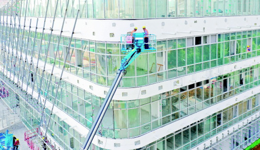 8月16日,城区佛子岭东路,由中铁四局集团承建的六安市人民医院健康保健门诊和健康管理中心项目施工现场,工人在进行外墙装修装饰作业。 据了解,该项目是我市重点民生工程项目,总建筑面积24000多平方米,目前施工单位紧扣时间节点、狠抓工程质量,采取“干两头歇中间”避高温施工,全力推进项目建设提质增效,预计10月底竣工可具备使用条件。项目建成后将进一步提升我市健康保健与健康管理水平,改善居民就医条件,提高医疗服务能力。 本报记者 田凯平 摄