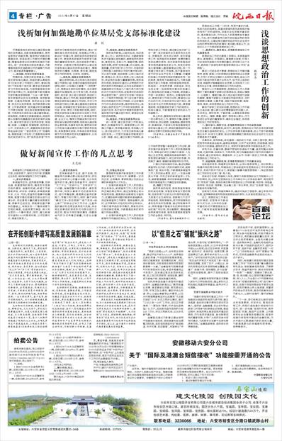 安徽移动六安分公司关于“国际及港澳台短信接收”功能按需开通的公告