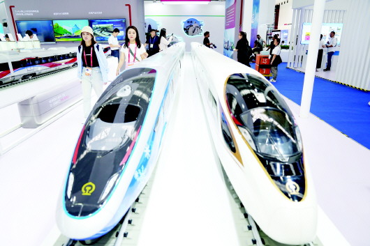 8月29日,参会者在中国中车集团展区了解情况。