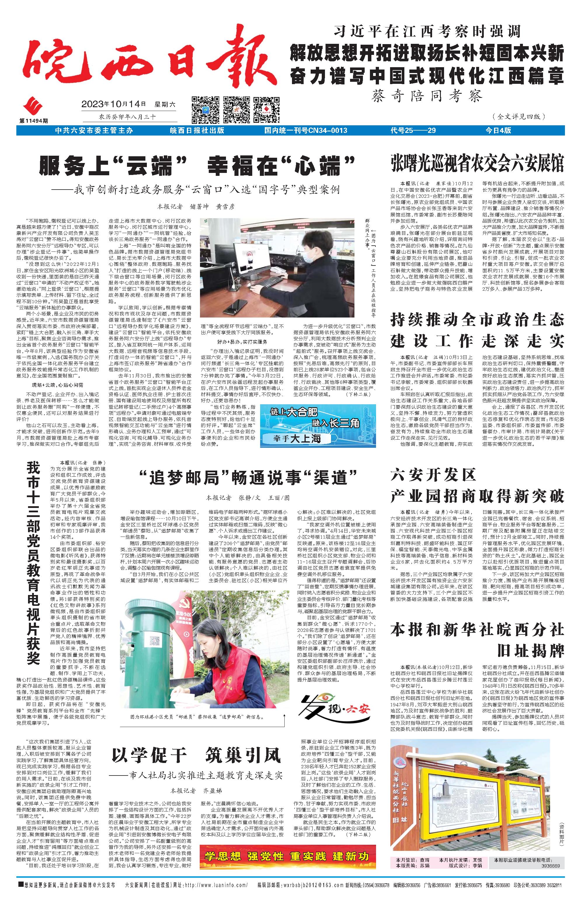 新闻 时间:2023年10月14日 来源:皖西日报