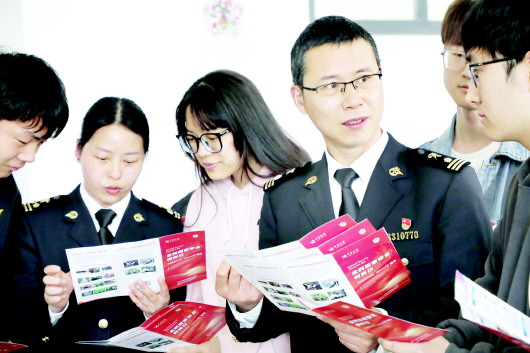 今年的4月15日是第九个“全民国家安全教育日”。4月9日,六安海关开展“守护国门生物安全 共筑美好家园”主题安全普法宣传进校园活动走进皖西学院。 海关工作人员通过利用PPT进行专题讲座、介绍相关出入境禁限物品、有奖答题互动等形式,介绍“总体国家安全观”的丰富内涵,科普坚决守牢生物安全关口对国家安全、生态安全和老百姓生命财产安全带来的重要意义,引导新时代大学生积极扛起维护国门生物安全的职责使命,以实际行动为国家安全贡献自己的智慧和力量。图为六安海关工作人员在向大学生宣传国门安全相关知识。 本报记者 田凯平 摄