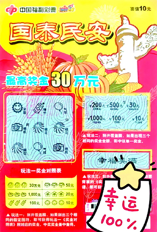 670万元 我市再中双色球大奖 五月好运旺,幸运不放假!五一假期最后一天,我市再中双色球大奖,5月5日晚双色球第2024050期开奖,我市霍邱县彩民10元五注单式票喜中1注一等奖,奖金670.5万余元。这是我市今年中得的第二注双色球一等奖,距离4月14日我市彩民中得的531万元双色球大奖仅隔三周,大奖接踵而至真是可喜可贺! 次日下午,记者跟随市福彩中心一行来到中奖网点冯井乡街道第34135077号销售网点,门前竖立的彩虹门、店里张贴的中奖喜报洋溢着喜庆的氛围,随着烟花爆竹声响,向周边的居民和路人传递着中奖喜讯,更是吸引了众多人前来购买彩票沾沾喜气和运气。同时,市福彩中心还为网点颁发幸运投注站奖牌及奖金。 当期双色球开出的红球号码是01、03、07、10、22、33,蓝球为02。全国开出13注一等奖,单注奖金6705264元。这13注一等奖花落9地,安徽中3注,吉林、湖北各中2注,北京、江苏、山东、湖南、四川、宁夏各中1注。 中奖网点销售员王仲顺说:“我从事福彩销售七八年了,之前双色球只中过二等奖两个,还有三等奖也中过四个,昨晚十点多知道自己网点中出一等奖了,第一次中这么大的奖非常激动,为中奖彩民感到开心。” 从市福彩中心了解到,截至2023年底,我市累计销售福利彩票近70亿元,筹集福彩公益金近20亿元,为社会福利和公益慈善事业发展做出了积极贡献。另截至目前,我市今年已中出双色球一等奖2注,二等奖28注,即开票一等奖3注。 随手公益 10元刮中“国泰民安”头奖30万元 欢乐3D,轻松造福。福彩3D又为大家添福增彩了,720万元赠票活动火热进行中。 活动时间 自3D游戏第2024107期(4月26日晚开奖)开始,持续30期。 活动内容 每期安排12万元针对单倍超过20元(含),且单票金额超过40元(含)的“单选复式”(单选单复式、单选双复式和单选全复式)和“单选位选”投注方式进行浮动赠票,按中奖注数均分(小数点后不计,按元取整),单注封顶460元; 每期安排12万元针对“6码及以上组选3复式”和“6码及以上组选6复式”两种投注方式进行浮动赠票,按中奖注数均分(小数点后不计,按元取整),“6码及以上组选3复式”单注封顶300元,“6码及以上组选6复式”单注封顶200元; 活动总预算720万元,赠票金须在购票当期期结后次日起的7个自然日内兑取,未赠送出的赠票资金不滚入下一期奖池。多期票可参与本次赠票活动,但需保证彩票开奖期在活动期内。组合复式不参加本次赠票活动。 福彩3D有好礼 720万赠票 4月28日上午,市福彩中心兑奖大厅迎来了刮刮乐“国泰民安”30万元头奖得主。 中奖的是位年轻彩民,平时不经常买彩票,偶尔会买刮刮乐,因为很享受刮彩票时那种令人兴奋的期待感,好玩、解压又方便。谈起这次中奖经历,该彩民周末休息时,路过红街34130181号销售网点时,被宽敞明亮的大厅和店内“小彩票,大公益”福彩公益展示栏所吸引,抱着为公益贡献一份力量的想法,他随手挑选了一张10元面值“国泰民安”和一张20元面值“诸事长虹”的刮刮乐。当刮到“国泰民安”票时,“烟花、烟花、烟花”三个相同的烟花图案映入眼帘,对照下边玩法奖金对照表一看,居然是一等奖30万元!他有些不敢相信,拿给现场销售员确认后,才确定幸运真的降临了,他笑着说:“没想到随手的公益之举竟能带来如此丰厚的回报,这个五一假期可以好好放松一下啦!” “赠人玫瑰,手有余香”,每一张福利彩票都能为福利事业奉献一份爱心,休闲时,购一张彩票,随手的公益,小小的善举,或许会有意想不到的收获。 皖西日报 市福彩中心 福彩风景线 福彩风景线 联合主办