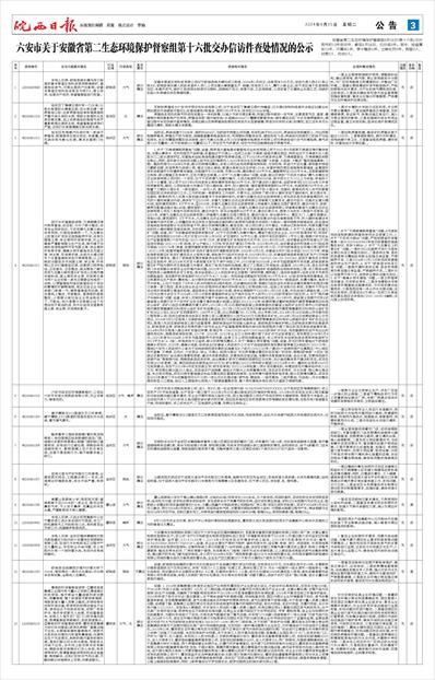 六安市关于安徽省第二生态环境保护督察组第十六批交办信访件查处情况的公示