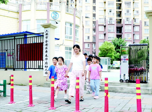 6月24日上午,金安区清水河街道寿春华府幼儿园2024年大班毕业典礼在幼儿园对面的清水河学校初中部报告厅进行彩排。这天一早,园长梅玲便领着孩子们轻轻松松地穿过园门口的人行道,向马路对面的目的地走去。在以前,这可不是一件容易的事。 原来,寿春华府幼儿园位于寿春华府小区的南门口,幼儿园门口的小道也是小区外围的人行道,平时是小区居民的必经之路,在上学、放学高峰时段,极易发生交通拥堵的情况。不巧的是,幼儿园大门口的人行道上,还划有一片共享单车停车位。一旦共享单车停满以后,师生出行除非绕远路,不然就得在共享单车停车的缝隙中穿梭,人车混流的情况不仅影响幼儿园师生的正常出行,也给年龄较小的孩子们带来一定的安全隐患。 “社区能不能想想办法帮忙解决一下这个问题呢?”6月初,寿春华府幼儿园园长梅玲来到金安区清水河街道茶棚社区寻求帮助。接到群众反映后,茶棚社区立即安排工作人员前往现场进行了解。证实问题属实后,工作人员随即联系辖区内城管部门,反馈此事,并与其共同研究解决方案。最终决定,对幼儿园门口的共享单车停车区域进行迁移,并在原地安装立桩,防止后续私家车辆随意停放。 在与共享单车企业沟通协调后,迁移工作开始有序进行。茶棚社区与城管部门一起,确定了新的共享单车停放位置,并制定了详细的迁移方案。在迁移过程中,社区志愿者采取多项措施确保施工安全。大家提前在周边区域设置警示标志和临时停车点,引导居民有序停放车辆,协助工作人员进行迁移工作。经过几天的紧张施工,幼儿园门口的共享单车车位迁移工作顺利完成。 “这一举措的实施,不仅有效缓解了幼儿园门口的交通拥堵问题,也为社区居民提供了更加便捷、安全的出行环境。”茶棚社区党总支副书记潘晶晶告诉记者,改造后,很多幼儿园学生家长为社区工作点赞,对社区的创新举措表示赞赏和支持。“未来,我们将继续关注居民需求,不断创新工作方式方法,努力实现‘小事不出社、大事不出街’的目标,切实解决群众的诉求,不断提升基层治理效能,为居民提供更加优质的服务和更加舒适的生活环境。”