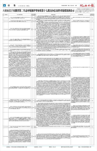 六安市关于安徽省第二生态环境保护督察组第十七批交办信访件查处情况的公示