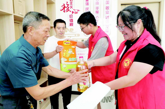 每个月的10日和20日,裕安区独山镇黄荆滩村新时代文明实践站里都特别热闹,因为这是每月村民们可以用文明积分兑换商品的日子。 “大米、纸巾、洗发水、油盐酱醋……我现在买这些东西都不用花钱,平时就直接用文明积分兑换,好得很!”9月10日,在黄荆滩村新时代文明实践站的志愿服务兑换超市里,村民黄伦球从工作人员手中接过自己兑换的大米,喜悦之情溢于言表。 走进黄荆滩村“积分超市”,货架上洗衣粉、热水壶、食用油、大米等日常生活用品整齐排列,每个商品旁边都鲜明标注着相对应的分值,一目了然。采访当天,村民们有序在实践站大厅排队,在志愿者的协助下登记上月积分及想要兑换的商品。当天来兑换积分的村民中,黄伦球的积分是最高的。该村党支部书记陈邦玉告诉记者,黄伦球的母亲四十年前就双目失明,岳父岳母也因高血压后遗症常年在家休养,黄伦球常年悉心照料几位老人,任劳任怨不说,还主动扛起了照顾患病舅兄和侄子侄女的担子,是个十里八乡都知道的好人。 “尊老爱幼是中华民族的传统美德,黄伦球的孝老爱亲行为值得赞赏,所以他每月的善行公益积分都很高。”陈邦玉所提到的“善行公益”积分,正是该村新时代文明实践积分参考标准的其中一项。据陈邦玉介绍,该村的积分制管理分为善行公益积分、移风易俗积分、配合工作积分、表彰奖励积分四个方面,村民们根据日常表现进行积分累积,既有正向加分,也有负面扣分,用正向的激励和反向的约束引领村民参与乡村治理。“积分兑换以来,明显感觉到村里的风气好多了,现在,村里不管有啥事,大家伙儿都很积极。” 在距离黄荆滩村不到4公里的南焦湾村,文明积分评选工作也同样开展得如火如荼。该村不仅每月对积分排名靠前的村民进行公示,还于上月起将传统积分簿“升级”为一张张面值不一的“积分卡”进行发放,让群众在参与过程中感受到付出的快乐和获得的愉悦,进而引导群众更加积极地参与环境整治、志愿服务等文明实践活动。 在新时代文明实践活动的浪潮中,我市各地积极探索创新方式,以积分兑换为桥梁,搭建起群众参与志愿服务、弘扬文明新风的有效平台,通过“小积分”兑换“大文明”,激发群众参与志愿服务活动的热情。如今,越来越多的乡镇、村委正通过积分这一量化手段,记录并表彰村民参与志愿服务、环境整治、移风易俗等文明行为的贡献,激发更多村民投身到乡村建设中去。 “自2021年3月开展新时代文明实践积分兑换活动以来,全镇已建成积分超市22个,实现所有行政村全覆盖,村民参与积分兑换累计25867人次。”在独山镇党委委员、副镇长熊俊杰看来,一系列行之有效的文明积分评选举措,不仅让村民得了“实惠”,也让文明村风、良好家风在基层生根发芽、蔚然成风。“下一步,独山镇将继续深化文明实践积分兑换机制,不断拓展积分应用领域,鼓励群众‘赚积分’‘比积分’,真正让乡村治理‘有分值’,让移风易俗‘有价值’,让群众积分‘有增值’,以文明为底色,以积分兑换为动力,共同描绘出更加美丽、和谐、幸福的乡村新画卷。”