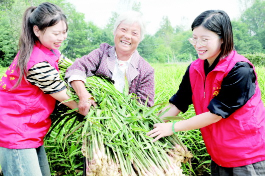 近期,舒城县的黄姜迎来了集中采收期,为了帮助群众加快采收进度,广大党员干部积极响应号召,深入田间地头开展志愿服务活动,打通服务群众“最后一公里”。图为舒城县千人桥镇完备村党员干部抢抓晴好天气帮助群众采收黄姜。
